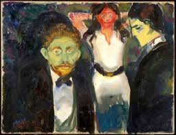 La 'Invidia', nuevamente, debería haber tenido una mirada de envidia en su rostro. Pero también en este fresco el símbolo ocupa un lugar tan grande y está representado con tanto realismo; el silbido de la serpiente entre los labios de Envidia es tan grande, y llena tan completamente su boca abierta de par en par que los músculos de su rostro están tensos y contorsionados, como un niño que llena un globo con su aliento, y que Envidia, y nosotros nosotros mismos para el caso, cuando la miramos, ya que toda su atención y la nuestra están concentradas en la acción de sus labios, no tenemos tiempo, casi, de sobra para pensamientos envidiosos.