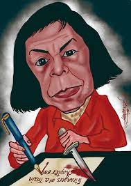 La media melena mal cortada con el mechón ladeado de escolar sobre sus ojos fríos e inexorables, junto a la mueca de desprecio de su boca, los rasgos de una autora que, tal vez, de tanto contemplar el mal de frente —en su galería de asesinos en potencia y de psicópatas—, había dejado su huella.