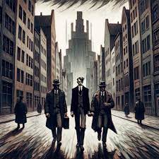 ¿Desde cuándo los empleados incluso de la autoridad judicial más enigmática usan cuero? K. reconoce a sus dos guardias, Willem y Franz, quienes le habían informado de su arresto al comienzo de la novela. El tercer hombre sostiene una vara en su mano. (Una palabra que no carece de doble significado.) Los va a azotar porque K. se había quejado de los guardias ante el juez de instrucción.