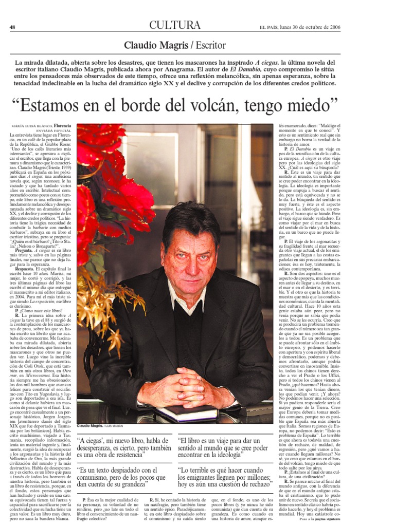 Magris es el último de una estirpe de grandes intelectuales y escritores italianos que descifraron Europa: sus raíces y sus horizontes. Cabeza germánica y alma italiana, ha sido traductor, crítico, lector empedernido, viajero e, incluso, senador de la República Italiana. Recibió el Príncipe de Asturias de las Letras en 2004 y sigue siendo un faro de la cultura y el pensamiento en Italia, pese a que ha estado algo ausente en el último año y medio.
