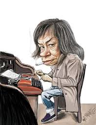 La media melena mal cortada con el mechón ladeado de escolar sobre sus ojos fríos e inexorables, junto a la mueca de desprecio de su boca, los rasgos de una autora que, tal vez, de tanto contemplar el mal de frente —en su galería de asesinos en potencia y de psicópatas—, había dejado su huella.