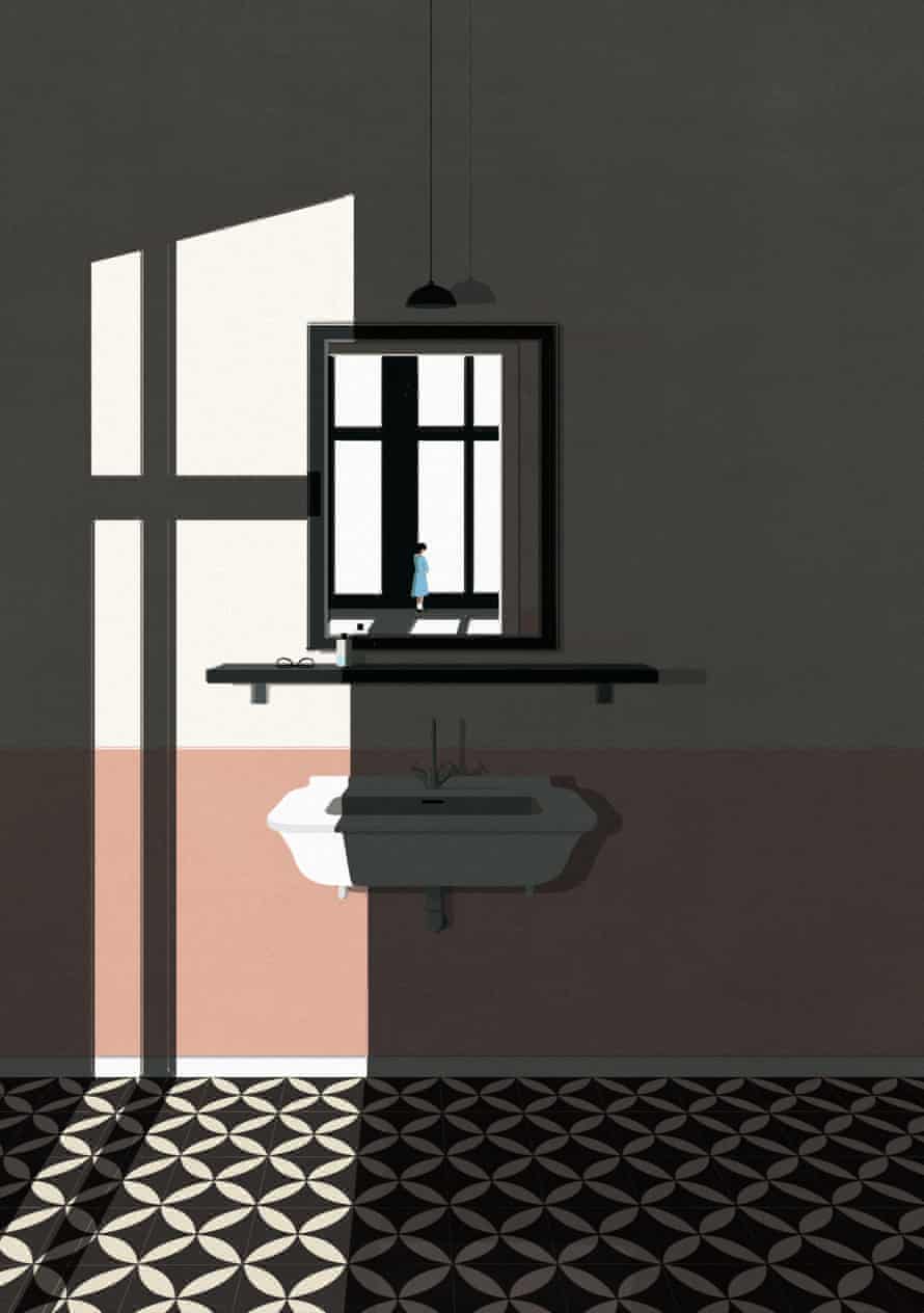 "Al oír unos pasos rápidos en el pavimento, en un momento de calma del rugido del viento, la señora Palmer se incorporó un poco en la cama. Llegaba la señora Blynn. Un ansioso ceño transformó la fina piel de la frente de la señora Palmer, pero ella sonrió cortesmente, con una cortesía anticipada. Cogió el espejo de mango largo que había en la mesita de noche. Su cara grisácea había dejado de impresionarla o avergonzarla. La edad era la edad, la muerte era la muerte y aunque no era guapa, seguía sintiendo el impulso de hacer lo que pudiera por parecer más agradable al mundo. "