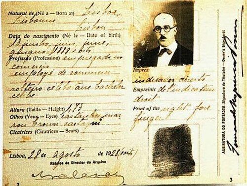 Edad y origen: Nació en Lisboa, parroquia de los Mártires, finca n.º 4 del Largo de S. Carlos (hoy del Directório) el 13 de junio de 1888. Filiación: Hijo legítimo de Joaquim de Seabra Pessoa y de D. Maria Madalena Pinheiro Nogueira. Nieto paterno del general Joaquim António de Araújo Pessoa, combatiente de las campañas liberales, y de Dña. Dionísia Seabra; nieto materno del Consejero Luís António Nogueira, jurisconsulto y que fue Director General del Ministerio del Reino, y de Dña Madalena Xavier Pinheiro. Ascendencia general: mezcla de hidalgos y judíos. Estado: Soltero. Profesión: El nombre correcto sería «traductor», pero es más exacto el de «corresponsal extranjero de casas comerciales». El ser poeta o escritor no constituye una profesión, sino una vocación. Domicilio: Calle Coelho da Rocha, 16, 1º. Dto. Lisboa. (Dirección Postal - Caja Postal 147, Lisboa). Funciones sociales que ha desempeñado: Si por eso se entiende cargos públicos o funciones destacadas, ninguna. Obras que he publicado: La obra está esencialmente dispersa, por varias revistas y publicaciones ocasionales. Lo que, de libros o folletos, considera como válido, es lo siguiente: «35 Sonnets» (en inglés), 1918; «English Poems I-II» y «English Poems III» (en inglés también), 1922, y el libro «Mensagem», 1934, premiado por el Secretariado de Propaganda Nacional, en la categoría «Poema». El folleto «O Interregno», publicado en 1928, constituyendo una defensa de la Dictadura Militar en Portugal, debe ser considerado como no existente. Habría que revisar todo eso y tal vez repudiar mucho. Educación: En virtud de, fallecido su padre en 1893, su madre haber casado, en 1895, en segundas nupcias, con el Comandante João Miguel Rosa, Cónsul de Portugal en Durban, Natal, fue allí educado. Ganó el premio Reina Victoria de estilo inglés en la Universidad del Cabo de Buena Esperanza en 1903, en el examen de admisión, a los 15 años. Ideología Política: Considera que el sistema monárquico sería el más propio para una nación orgánicamente imperial como es Portugal. Considera, al mismo tiempo, la Monarquía completamente inviable en Portugal. Por eso, de haber un plebiscito entre regímenes, votaría, si bien con pena, por la República. Conservador de estilo inglés, esto es, liberal dentro del conservadurismo, y absolutamente anti-reaccionario. Posición religiosa: Cristiano gnóstico y por tanto enteramente opuesto a todas las Iglesias organizadas, y sobre todo a la Iglesia de Roma. Fiel, por motivos que más adelante están implícitos, a la Tradición Secreta del Cristianismo, que tiene íntimas relaciones con la Tradición Secreta en Israel (la Santa Kabbalah) y con la esencia oculta de la masonería. Posición iniciática: Iniciado, por comunicación directa de Maestro a Discípulo, en los tres grados menores de la (aparentemente extinta) Orden Templaria de Portugal. Posición patriótica: Partidario de un nacionalismo místico, del que sea abolida toda la infiltración católico-romana, creándose, si es posible, un sebastianismo nuevo, que la substituya espiritualmente, si es que en el catolicismo portugués hubo alguna vez espiritualidad. Nacionalista que se guía por este lema: "Todo por la humanidad, nada contra la nación". Posición social: Anticomunista y antisocialista. Lo demás se deduce de lo expuesto arriba.